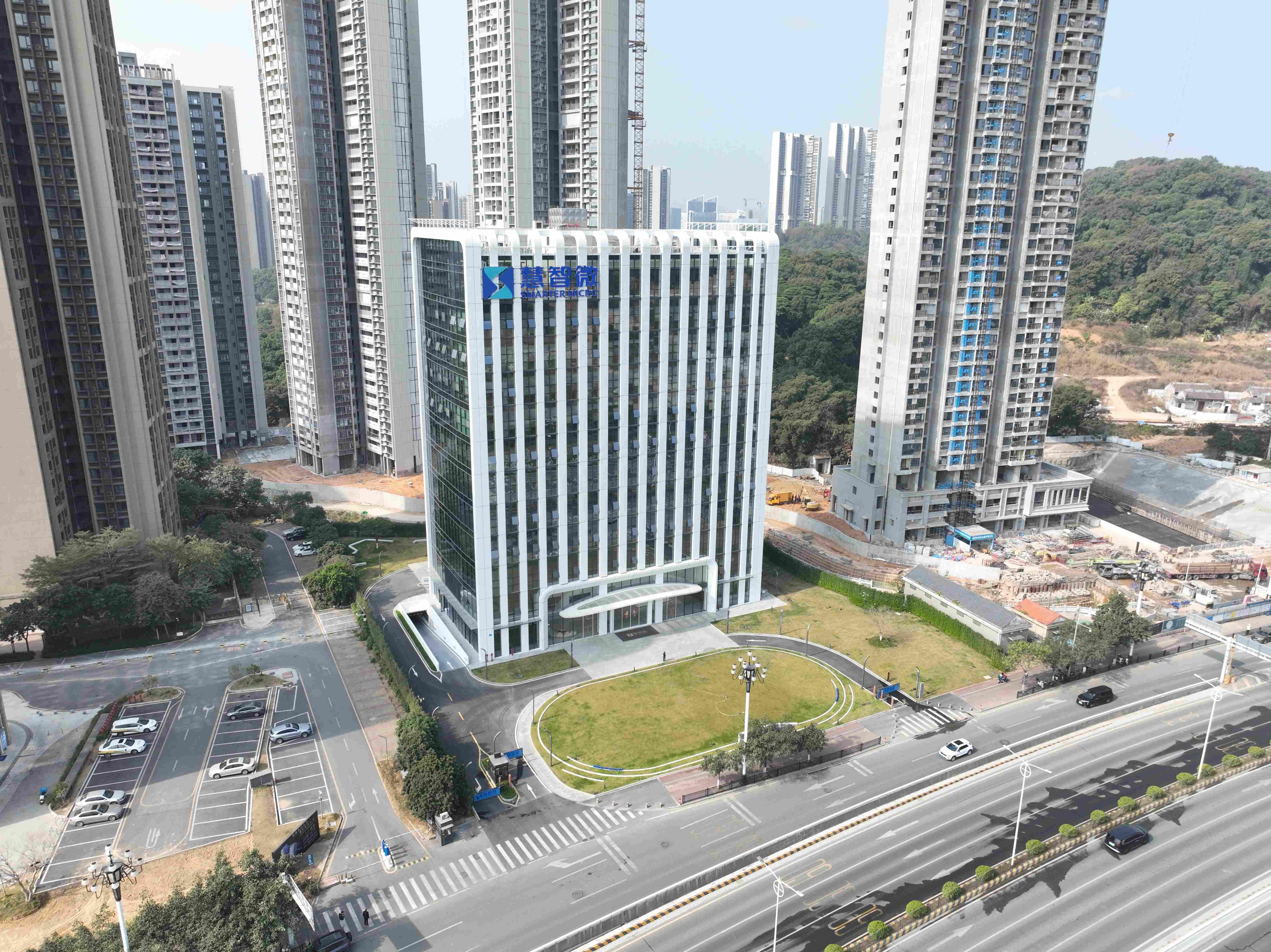 完工时间:2025年 建筑面积:20,316㎡ 项目地址:广东省广州市黄埔区开创大道1555号广州慧智微总部大楼(慧智微总部基地及广州研发中心建设项目),位于广州市黄埔区开源大道以北、开创大道以西,是广东省集成电路产业发展的重点企业项目和广州市黄埔区推动科技创新的核心工程。作为射频前端芯片设计领军企业的总部基地,项目总投资逾4.7亿元,由全资子公司尚睿微电子(广州)有限公司负责建设,打造集总部办公、技术研发于一体的创新高地。园区建筑以“现代科技+绿色智慧”为设计理念,总建筑面积约2.03万平方米,建设内容包括1幢地上12层、地下2层的综合楼,聚焦射频前端芯片及模组的研发、设计和销售。