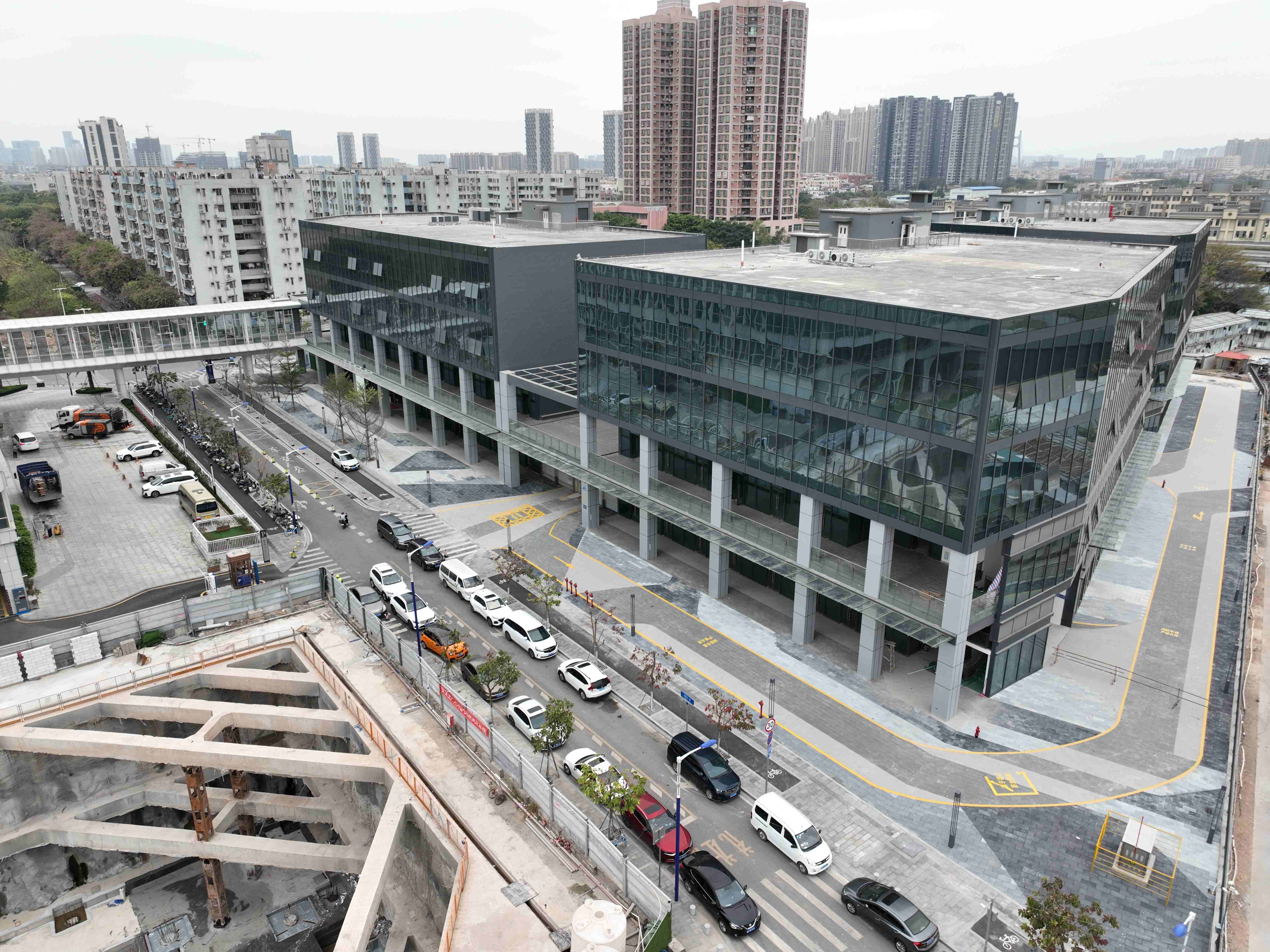 建筑面积:116,964㎡ 项目地址:广州市荔湾区海龙围科创区白鹤沙地块名创优品白鹤沙总部大厦,位于广州市荔湾区海龙围科创区白鹤沙地块,是广州市重点建设项目和荔湾区推动产业升级的核心工程。作为广州首批新型产业用地(M0)项目之一,打造集研发中心、智能小家电设计智造及展示中心于一体的综合型产业基地。项目于2021年启动建设,2025年由区属国企荔湾发展集团收购续建,截至2026年3月,项目三栋裙楼及地下室已竣工验收,29层塔楼获批开工建设,建成后将为“29层塔楼获批开工建设,建成后将为“广州荔湾产业园”扩容约12.52万平方米产业载体。