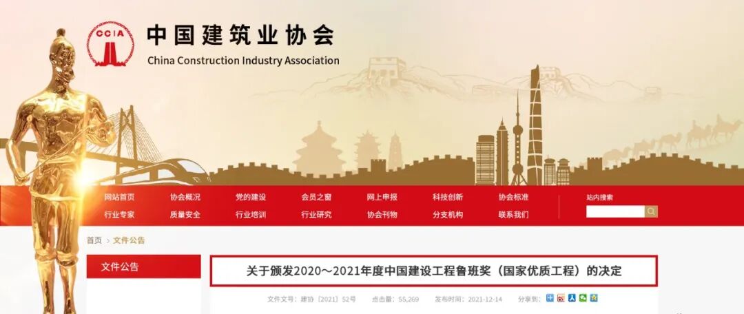 详情请查阅:2020~2021年度中国建设工程鲁班奖(国家优质工程)获奖名单(第189项)